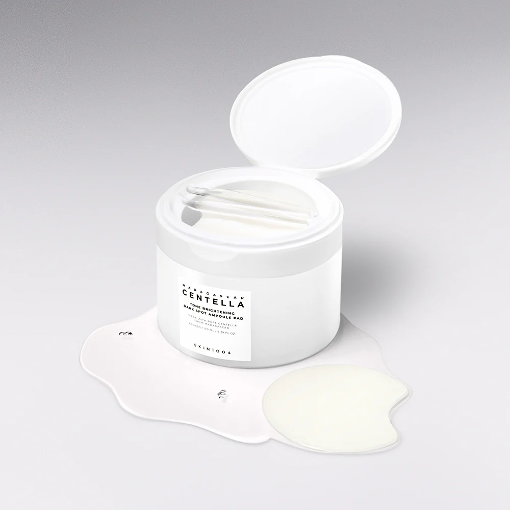 SKIN1004 Madagascar Centella Tone Brightening Dark Spot Ampoule Pad – інтенсивні ампульні патчі для обличчя, насичені есенцією з пептидами, ніацинамідом, витамином C та MadeWhite™ (комплекс, похідний від центелі азіатської). Патчі допомагають боротися з темними плямами, нерівним тоном шкіри та тьмяністю, водночас увлажнюючи та заспокоюючи шкіру.