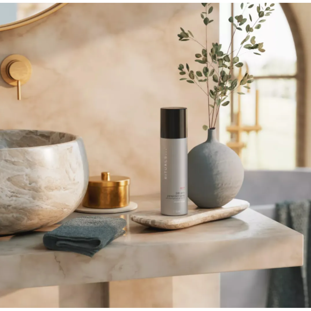 Антиперспірант спрей THE RITUAL OF SPORT RITUALS ефективний антиперспірант для 24-годинного захисту від поту спеціально розроблений для активного способу життя. Аромат із унікальною ароматичною технологією був спеціально розроблений, щоб дати вам відчуття бадьорості. З активованим вугіллям у складі, який зробить чисту шкіру без неприємних запахів. Насолоджуйтеся свіжим ароматом дерева, який заряджає тіло і розум життєвою енергією.
