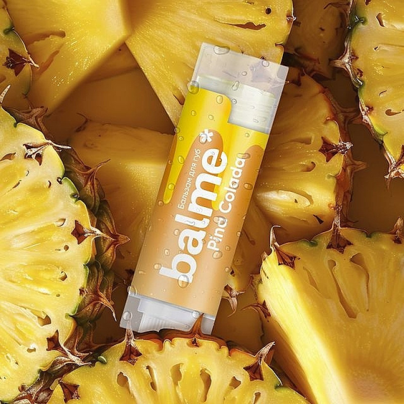 Бальзам для губ Pina Colada Balme з ніжним ароматом ананасу й кокосу м’яко доглядає за шкірою губ, забезпечуючи інтенсивне зволоження та захист у будь-яку пору року.