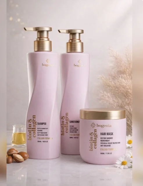 Кондиціонер для волосся Biotin & Collagen Conditioner Bogenia — це ефективний догляд для зміцнення, зволоження та відновлення волосся. Формула збагачена біотином і колагеном, які допомагають зробити волосся більш густим, еластичним та блискучим.
