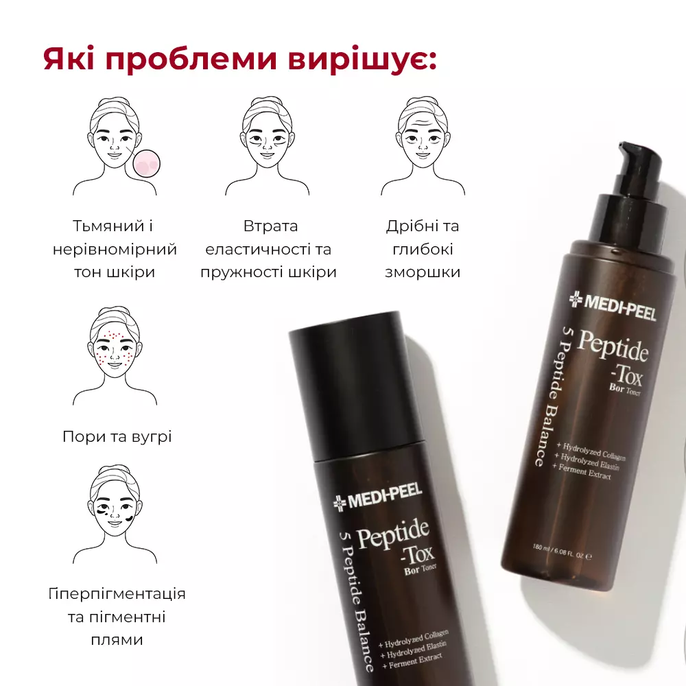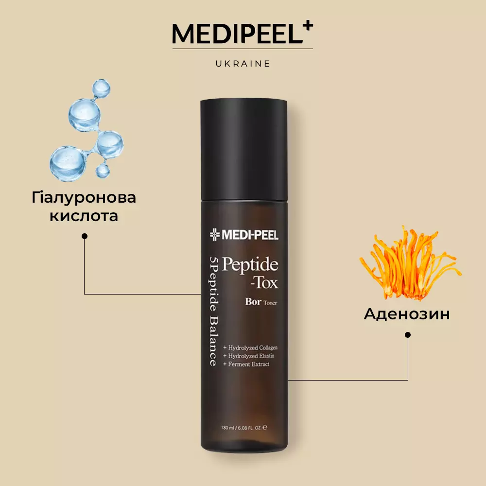 Ліфтинг-тонер для обличчя з комплексом пептидів Medi Peel Peptide-Tox Bor Toner, 180 ml