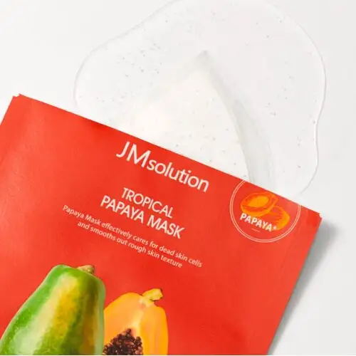 Тканинна маска JMsolution Tropical Papaya Mask, що вирівнює, делікатно відлущує роговий шар, видаляє омертвілі частинки, робить шкіру гладкою і сяючою.