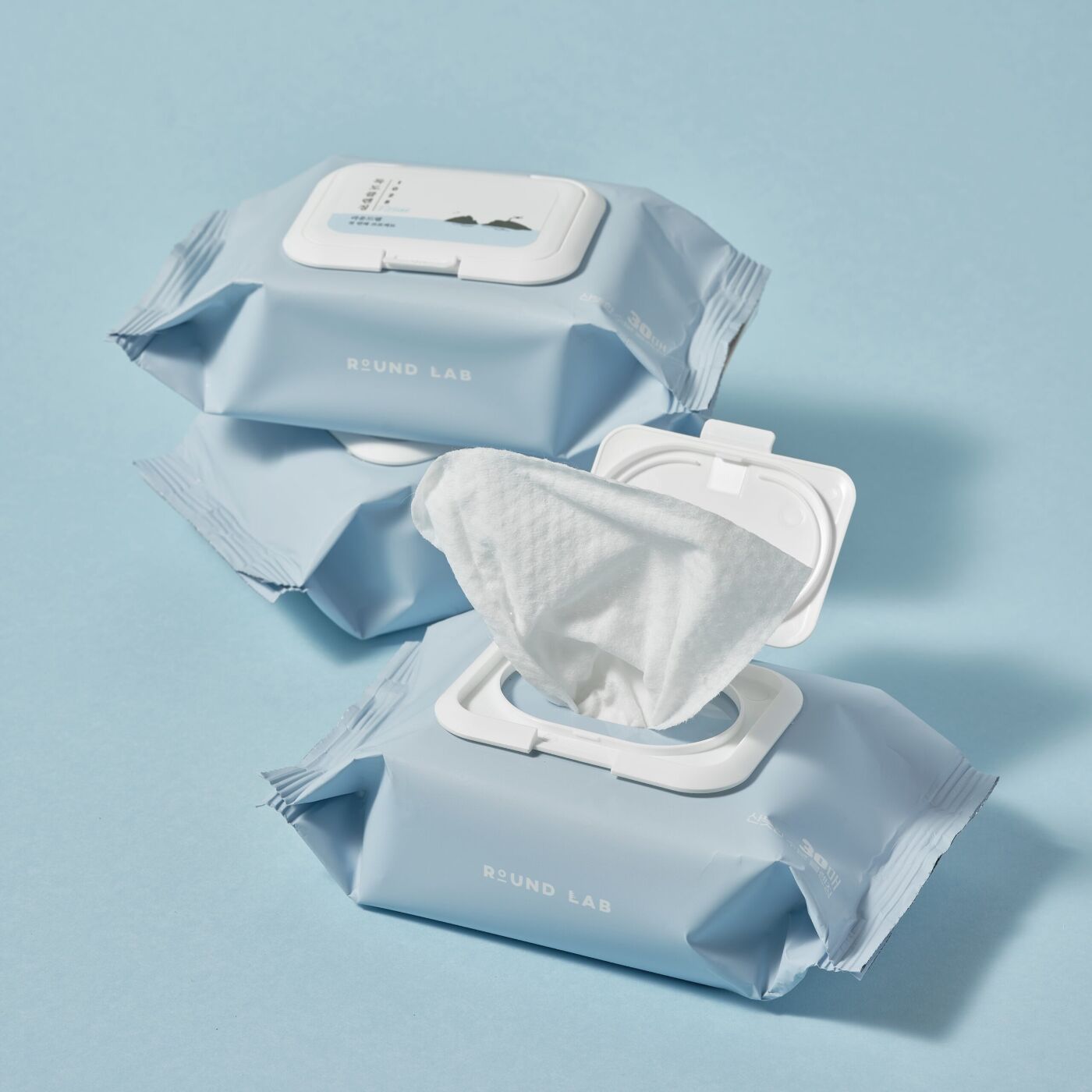 ROUND LAB 1025 Dokdo Cleansing Tissue — серветки з міцелярною водою для дбайливого очищення обличчя.