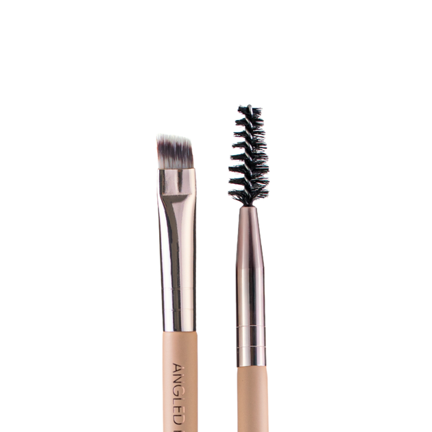 Скошений зріз пензлика дозволяє чітко формувати лінії, промальовувати хвостики й заповнювати пробіли. Спіральна щіточка з іншого боку акуратно розчісує брови, фіксує форму і розтушовує надлишок засобу.