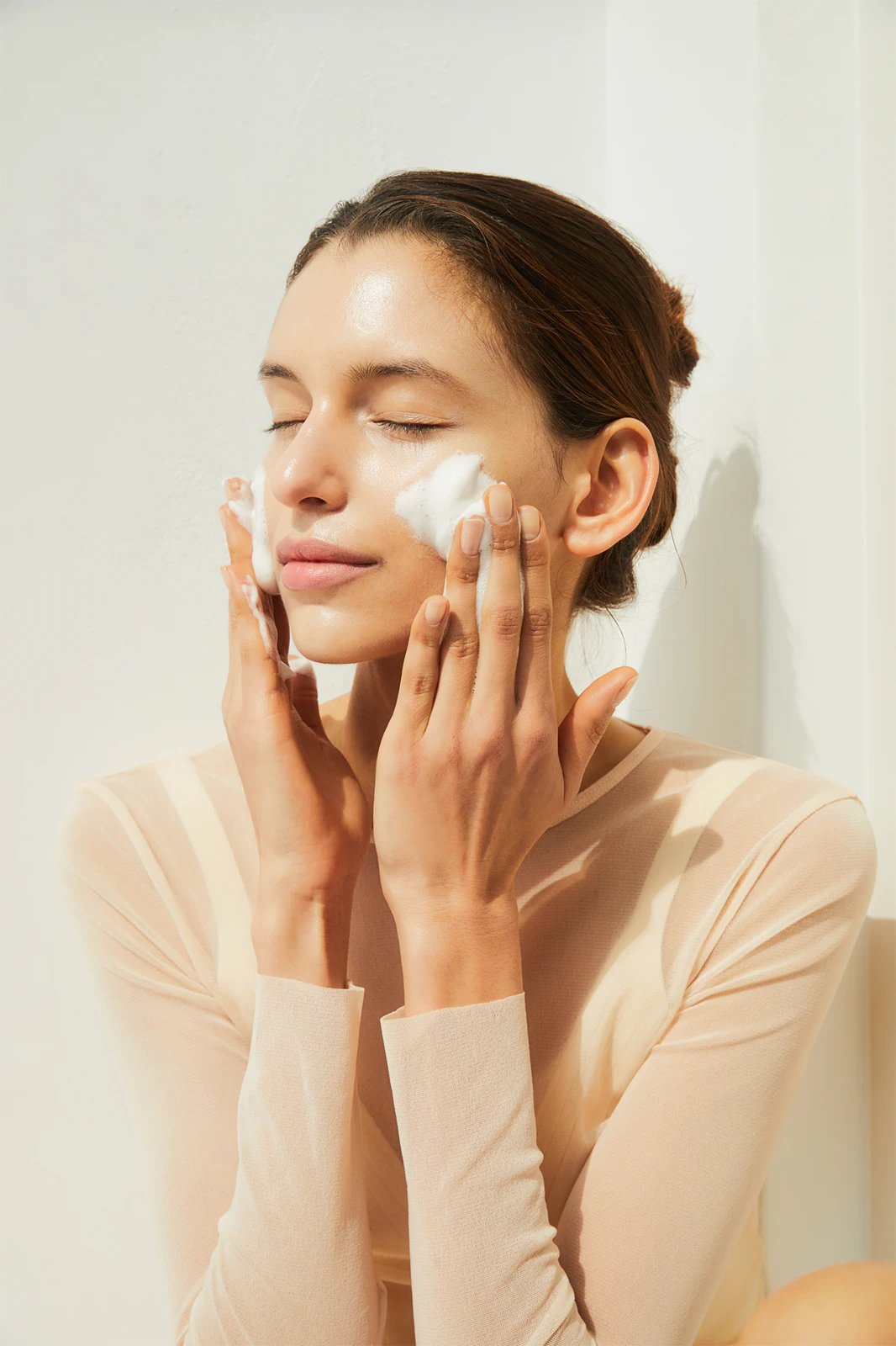 Нанесіть очищувальну пінку SKIN1004 на вологе обличчя, спіньте й ретельно змийте.