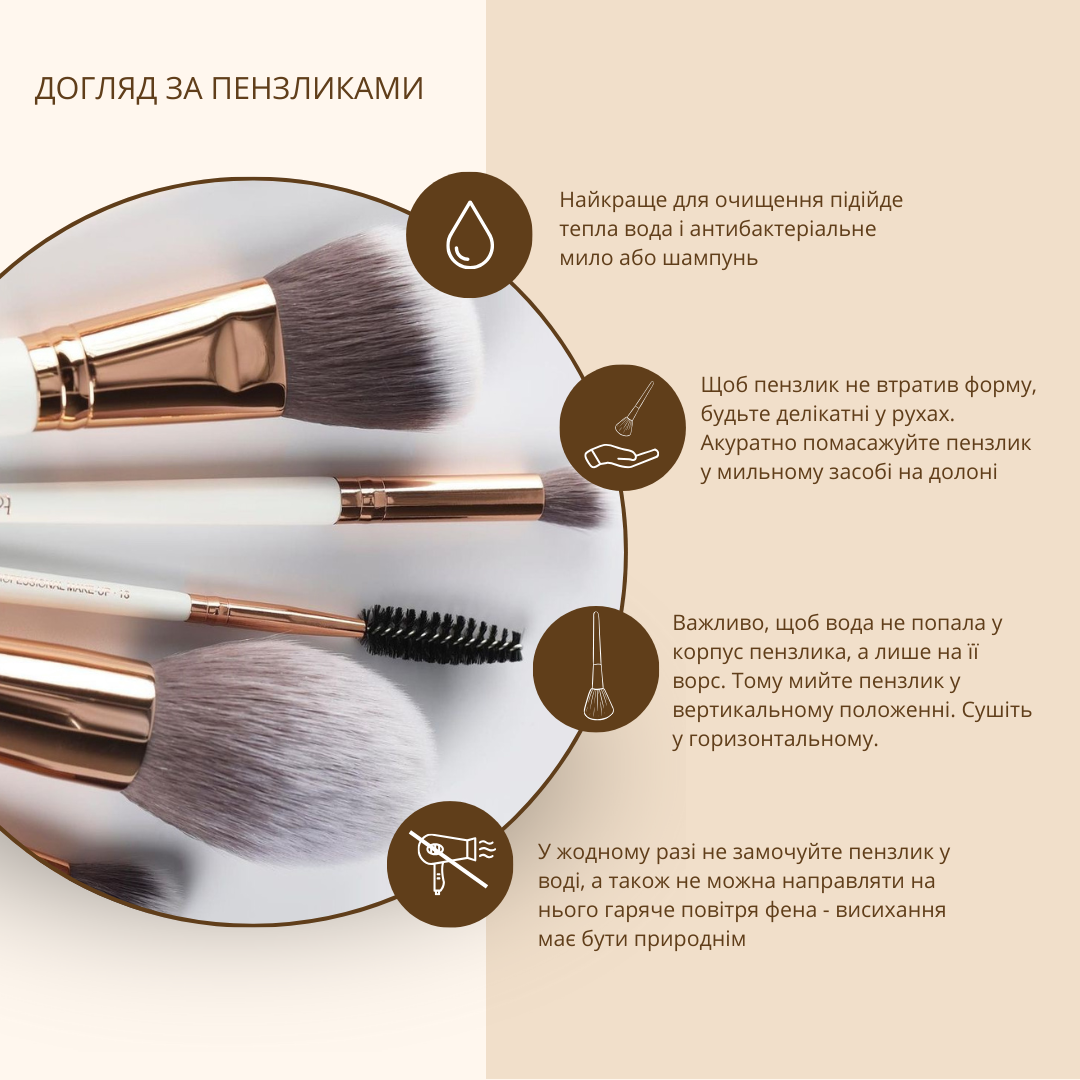 - Легкість у використанні: зручна форма та розмір пензлика дозволяють легко контролювати рухи під час нанесення, що робить процес макіяжу максимально комфортним.