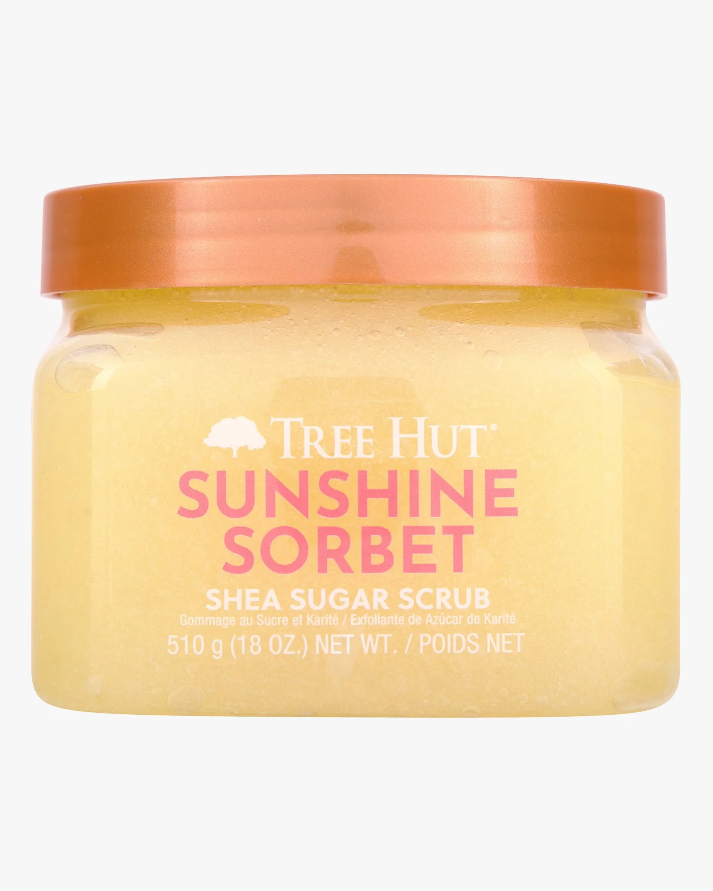 Цукровий скраб від Tree Hut збагачений олією ши та рядом натуральних олії, таких як олія примули вечірньої, авокадо, макадамії, солодкого мигдалю, сафлору та апельсинової олії.