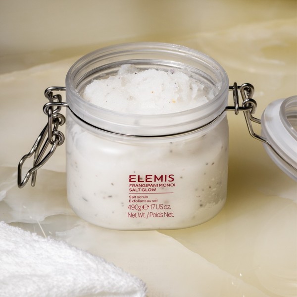 Сольовий скраб, що тане на шкірі, огортаючи її ніжністю та турботою. Багатий мінералами солі та екстрактом гібіскусу, він інтенсивно очищає та оновлює, даруючи шкірі оксамитову гладкість. А екзотичні олії таїтянських моної та франжіпані наповнюють її вологою та життєвою силою.