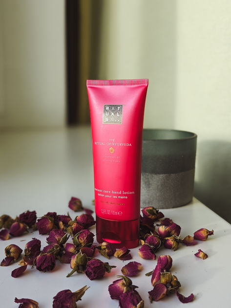 Бренд Rituals створює косметику з насиченими шлейфовими ароматами, які створюють настрій і допомагають відчути повноцінний релакс. The Ritual of Ayurveda Recovery Hand Balm — це зволожувальний і живильний засіб для рук, який є менш щільним, ніж крем і виконує всі його функції. Цей бренд пропагує філософію уповільнення. Він пропонує зупинитися, щоб розслабитися і приділити увагу собі, а також здоров’ю і красі свого тіла. Ця косметика допоможе досягти балансу, а також гармонії та подарує задоволення від кожної beauty-процедури.