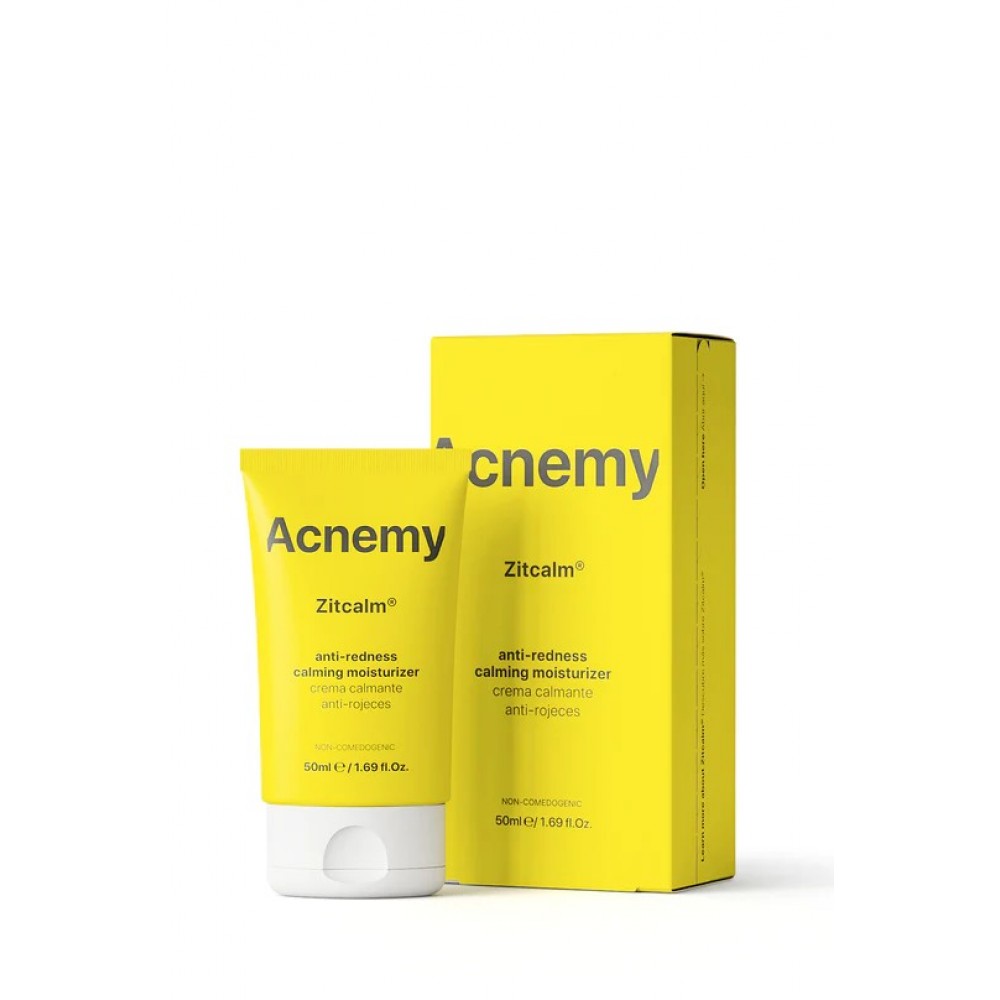 Acnemy ZITCALM Anti-redness Calming Moisturizer зволожує, заспокоює та відновлює природний бар’єр шкіри. Крім того, унікальна комбінація зволожуючих інгредієнтів, таких як вітамін F, бісаболол та алантоїн, зменшує та запобігає появі сухості та почервоніння на шкірі. Його нежирна гладка текстура легко наноситься і швидко вбирається, забезпечуючи тривалий ефект зволоження, уникаючи відчуття стягнутості та подразнення. Відновлює пошкоджений шкірний бар’єр після процедур, що висушують шкіру.